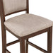 | Featured-3 | Comfortable Counter Chairs Built to Last-100% polyester light brown upholstered seat and back cushions are supported by solid wood legs reinforced with solid wood base stretchers that double as footrests. | |