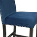 Introducing the New Classic Furniture Celeste Counter Dining Chair – a set of two chairs designed to combine style, comfort, and durability seamlessly. Crafted with solid Rubberwood legs and base stretchers that double as footrests, these counter chairs ensure a strong and stable seating solution for your elevated dining experience. The 100% polyester royal blue velvet upholstery covers sumptuous memory foam cushions, offering both softness and durability for an easy-care, luxurious seat. The espresso legs, paired with glimmering silver nailhead trim, add a touch of contemporary glamour to the plush velvet seating. Setting up these counter chairs is a hassle-free experience with the included easy-to-follow assembly instructions. Elevate your dining space with the Celeste Counter Dining Chair – where quality construction meets comfort and modern style effortlessly.