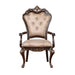 The Royal Classics Constantine Dining Arm Chairs (Set of 2) in cherry are a stunning combination of heirloom quality and classic design, making them a perfect addition to your dining room. Expertly crafted from solid pine and premium fancy face birch veneers, these chairs are designed for both beauty and durability, ensuring they stand the test of time. The multi-step finish enhances the wood’s natural grain, while delicately burnished gold tipping adds a luxurious touch to the intricate carvings. With a design inspired by 18th-century Rococo style, the chairs feature ornate ornamentation and carvings that bring a sense of regal elegance and sophistication to your home. The crystal button-tufted backs and cushions, upholstered in luxurious 100% polyester sateen fabric, offer not only a refined look but also superior comfort and support. These arm chairs are perfect for elevating your dining experience with a combination of timeless style and unmatched comfort.