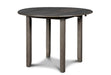 The small space friendly Gia Drop Leaf Dining Table and Chair Set has two 8" drop down leaves that transform this dining table from a 42" round dining set to 24" wide, fitting into compact spaces with ease. The dining table and chair legs are crafted of solid Rubberwood to add strength and stability. Elegant reverse diamond Mindi wood veneer dining table top accents the beautiful wood grains which are highlighted by the multi-step charcoal washed gray finish. The set includes two comfortable dining chairs with 100% polyester natural upholstered seat cushions and backrests. The final touch is Gia's signature interlocking chain design on the chair back, giving this welcoming dining set a touch of sophistication. The result is a casual, contemporary dining set that ideal for dining rooms, kitchen nooks, dorms or game rooms.