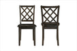 The Trellis Wood Dining Chair set in brown is a perfect addition to any dining area, offering both durability and style. This set includes two dining chairs, each expertly crafted from solid rubberwood to ensure long-lasting use and stability. The traditional brown finish highlights the natural grain patterns of the wood, while the purposely weathered edges create a timeless, heirloom look. Featuring diamond trellis-style backs, curved legs, and a tapered design, these chairs bring a distinctive touch to your dining space. The contoured saddle seats are designed for ergonomic support, providing comfort by conforming to the natural curve of the body. Enhance your dining experience with these elegant and comfortable chairs, making every meal a delightful occasion.