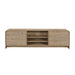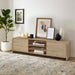 Introducing the Mara 70" TV Console, a fusion of eco-friendly construction and modern functionality. Crafted from durable manufactured wood and adorned with environmentally friendly laminate, this console boasts both durability and sustainability. With its spacious top surface, it accommodates large screen televisions with ease, while shelves offer ample space for entertainment components. Two roomy drawers discreetly store games, controllers, and other family room essentials. The minimalist design, featuring curved drawer fronts and waterfall-style tops and sides, adds a contemporary touch to any living space. Finished in a light, natural beige hue, it seamlessly complements a variety of décors. Assembly is a breeze, with easy-to-follow instructions for a hassle-free setup in approximately 45 minutes. Elevate your entertainment experience with the Mara 70" TV Console.