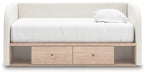 Looking for a twin upholstered daybed with storage that's both playful and practical for your little one? Shapella is just the ticket. Softly rounded shaping rocks a boho vibe, while light upholstery creates a casually inviting look that whispers “sweet dreams.” Spacious drawers underneath provide plenty of storage, so there’s no need for a messy room.