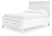| Details | Includes panel headboard, storage footboard, rails and roll slats , Made with hardwood solids and MDF substrate, Side rails feature laminated solid hardwood slat support rails (or LVL) with glued and screwed blocking for added strength , White painted finish, Round metal drawer knobs with satin nickel-tone finish, Tapered feet, 2 smooth-gliding drawers in footboard , Bed does not require additional foundation/box spring; accommodates most zero clearance adjustable bases with the addition of a bunkie board , Mattress available, sold separately, Assembly required | |