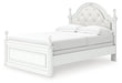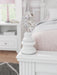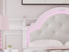 Fit for a princess. This full upholstered panel bed’s crisp matte white finish pairs with charming ornate beading and sumptuous button-tufted upholstery—perfect for your girly girl. Decorative ball tops and multicolored LED lighting in the headboard are the crowning touches to make your little one feel like royalty.