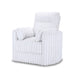 The Embrace Swivel Living Room Accent Chair in white combines comfort and style with practical functionality. Upholstered in 100% white polyester fabric with a soft, blanket-like texture, this chair is designed for ultimate relaxation. It includes one swivel chair and two side accent pillows that complement its luxurious ribbed channel fabric. The high-density, resilient foam cushions provide supportive and comfortable seating, enhancing the overall lounging experience. Built with a strong and durable frame made from a combination of solid and manufactured woods, this chair ensures long-lasting quality. The smooth swivel action allows for easy movement and engagement in conversations. The versatile, transitional styling of the Embrace collection, paired with the abundance of snuggly pillows, invites you to lounge and unwind in unparalleled comfort.