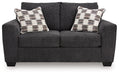 This loveseat personifies contemporary comfort. Its clean-lined frame and neutral color lend must-have versatility. Softly textured fabric makes it that much more inviting. A welcome combination of chic style and a cozy feel, this piece completes your living room with modern flair.