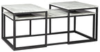 | Details | Made of decorative laminate, engineered wood and metal, Set of 3, Faux Carrera marble top and shelf, Nesting design, Tubular metal frame with black powder coated finish, Assembly required | |