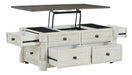 What a fresh interpretation of country classic style. Inspired by American farmhouse craftsmanship, but with an elevated sensibility, this lift-top coffee table blends distinctive details such as turned post accents and raised drawer fronts for a substantial look that feels right at home. Those who appreciate rustic character should take note of the table’s thick crown moulding, beautified with a vintage two-tone finish. It features four storage drawers, a small concealed storage tray under the lift-top, and robust legs that are ready to stand the test of time. And casters allow you to roll it wherever you like.