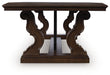 Lavish, luxurious living is within reach when you add this coffee table to your living room. Recalling a classic sense of refinement, its elegant scrolled legs make a beautifully bold statement. Ornate details on the apron add an air of opulence to the regal dark brown finish. The look is timeless. The feel? Right at home.