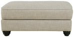 Blending comfort and style, this ottoman cradles your tired feet at the end of a long day. The distinctive look of heavily textured fabric in a light, neutral hue is enhanced by lighter flax peeking through. Whether paired with another piece or used on its own, this ottoman looks and feels right at home.