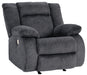 If highly contemporary looks and a heavenly feel sit well with you, rest your eyes on this power rocker recliner. Padded velvet upholstery has a plush high pile that's so soft to the touch. Jumbo contrast stitching adds fashion-forward flair, while radius cut arm frame incorporates cool, curvaceous interest. At your fingertips: one-touch power control with a zero-draw USB plug-in that’s not only convenient but also energy efficient. When it comes to high style at a down-to-earth price, this power recliner really brings it home.