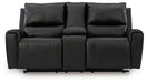 Looking for that perfect blend of comfort and style? This reclining loveseat with console wraps you in luxury with an expertly crafted combination of leather and faux leather upholstery. Its clean lines and rich neutral tone work beautifully in contemporary spaces. Plump pillow top arms and pull tab reclining motion make it your go-to spot for relaxing after a long day.