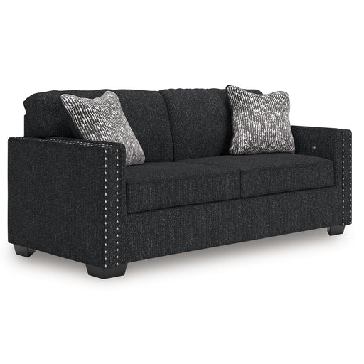 This stunning sofa leaves a lasting impression. Its cozy cushions, chic coal-colored upholstery and striking nailhead trim are a perfect blend of c...