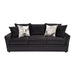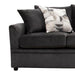 Featured-2 Cozy-Easy Care Fabric: 100% Polyester dark gray upholstery is carefully tailored and complemented with coordinating accent pillows.