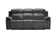 The Tango Dual Recliner Sofa in Shadow Gray combines durable craftsmanship, luxurious comfort, and sleek style to create the perfect addition to any living space. Built with premium hardwood and plywood frames, this sofa offers long-lasting stability and support. The blend of resilient foam cushions and advanced pocket coil technology ensures superior support and comfort, maintaining its shape over time for a consistently cozy seating experience. Upholstered in velvety soft, easy-care 100% polyester fabric, the shadow gray finish provides an elegant yet practical touch. Bold contrast stitching and plush cushioning on the headrests and armrests add a sophisticated flair, making this sofa a standout in any room. Effortless reclining with smooth-action, heavy-duty mechanisms allows you to adjust the reclining backs and footrests to your perfect position, ensuring ultimate relaxation every time you sit down.