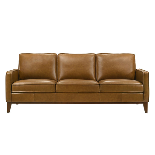 The Caspar Top Grain Leather Sofa is a luxurious statement piece, upholstered in rich caramel brown 100% top-grain leather. Known for its durabilit...