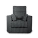 The Embrace Swivel Living Room Accent Chair in charcoal gray combines comfort and style with practical functionality. Upholstered in 100% charcoal gray polyester fabric with a soft, blanket-like texture, this chair is designed for ultimate relaxation. It includes one swivel chair and two side accent pillows that complement its luxurious ribbed channel fabric. The high-density, resilient foam cushions provide supportive and comfortable seating, enhancing the overall lounging experience. Built with a strong and durable frame made from a combination of solid and manufactured woods, this chair ensures long-lasting quality. The smooth swivel action allows for easy movement and engagement in conversations. The versatile, transitional styling of the Embrace collection, paired with the abundance of snuggly pillows, invites you to lounge and unwind in unparalleled comfort.