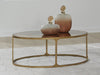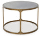 Details Made with tubular steel frame, Durable powder coat finish with antiqued goldtone texture, Inset tempered glass top with faux marble finish