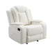 Meet the Orion Glider Recliner, where durability meets comfort. Crafted with a robust blend of hardwoods and manufactured wood, its sturdy frame ensures lasting strength. Sink into luxury with its soft, breathable upholstery, a lavish mix of polyester and PU for an indulgent feel. Enjoy seamless reclining action thanks to top-quality mechanisms, while high-density foam and pocket coil cushions cradle you in comfort. This recliner's sleek design is accentuated by white stitching and a distinctive diamond pattern, elevating any space with its contemporary flair. And with lift-up pillowed arms revealing convenient storage compartments, style meets functionality seamlessly. Relaxation awaits in the Orion Glider Recliner—where quality craftsmanship meets modern convenience.
