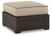 Who says the great outdoors isn’t made for luxury living? This cushioned ottoman offers all the high-end design, plush comfort and durability you could ask for, and then some. Its all-weather, rust-proof aluminum frame provides the easy-breezy wicker look you love without the high maintenance. Rest assured, the high-performing Nuvella® fabric is made to stand up to the elements.