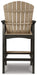 Raise the bar on outdoor living with this bar stool set. Crafted for style and durability, it caters with sturdy armrests, an ample footrest, a high shell back and a waterfall wrapped seat for curvaceous comfort. Adding to its appeal: a standout two-tone look that pairs driftwood and black finishes for twice the interest, and a slatted design to easily shed rainwater.