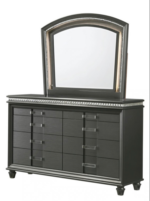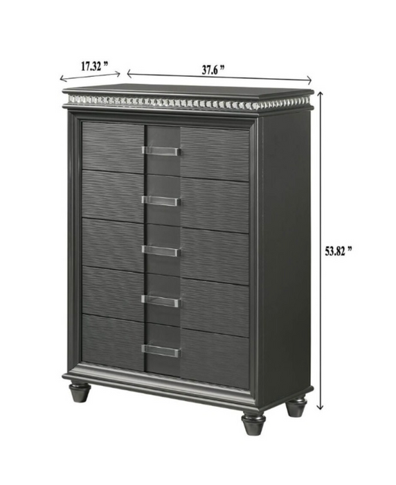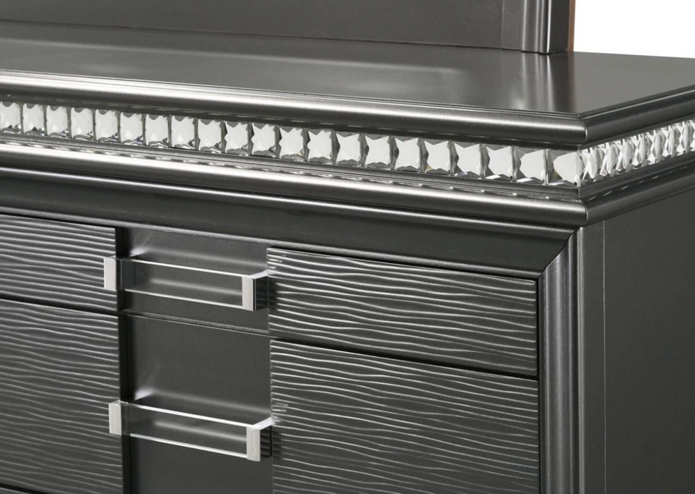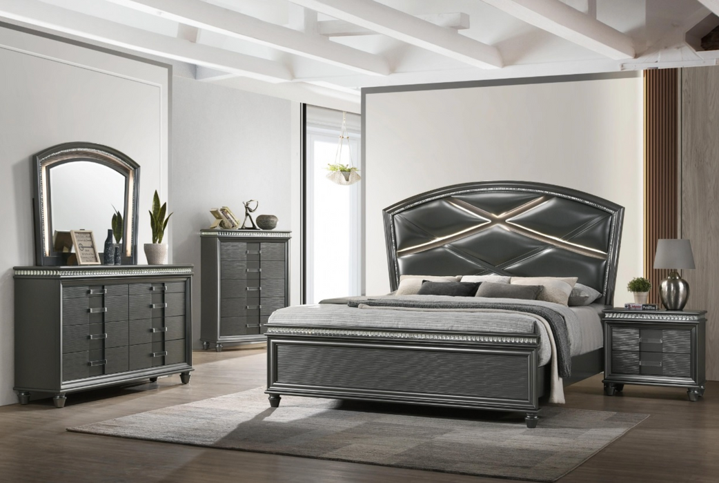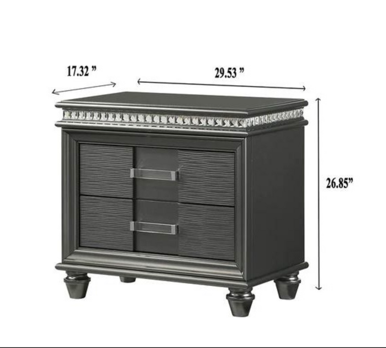 The Adira Collection creates an inviting atmosphere that is sure to transform the decor of any bedroom. Transform your master bedroom suite into one of luxury with this modern-style panel bed. Each piece is unique and full of glam charm. The panel bed is available in Queen or King. It has upholstered headboard panels, stout, bracket legs, and matching side rails. The nightstand has 2 drawers, both offering ample storage space. Modern styling crystal inlay and decorative details headboard. The Adira Bedroom Collection is a perfect life partner for any home.