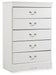 This chest of drawer's crisp cottage white gives traditional Louis Philippe profiling a delightful style awakening. The look is timeless. The feel? Right at home. Five smooth-gliding drawers with antiqued bail pulls beautifully accommodate.
