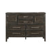Featured-3 Versatile Style: The Andover Dresser beautifully captures modern rustic style with its clean lines, creating a harmonious and cohesive look. Sleek, elongated metallic handles add a touch of sophistication, standing out elegantly against the rich, dark wood finish. The framed drawer fronts enhance the design, adding depth and dimension, while the sturdy, block-style legs provide a solid foundation that underscores the collection's robust and enduring structure.