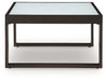 Sleek, contemporary style meets outdoor living in this coffee table. Its clean-lined black aluminum frame expertly balances good looks and longevity. A stunning top provides the natural stone look you love, while its glass construction weathers the seasons beautifully. With this coffee table on the back porch or poolside, you can confidently curate a luxe vibe.