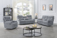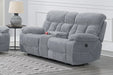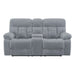 Elevate your relaxation experience with the Bravo Dual Recliner Console Loveseat with Power Footrest in Stone Gray. Crafted for optimal comfort and convenience, this loveseat features two power footrests, a built-in storage console, and two cupholders. Upholstered in irresistibly soft 100% polyester easy-care fabric, it offers a cozy retreat in your living space. Sink into the generously pillowed arms and headrests, while the channel back and comfy bucket seats provide unparalleled comfort and support. Adjust your position effortlessly with the fully upholstered chaise recliner footrests, controlled by a simple touch of a button. Crafted with hardwood and manufactured wood frames, coil spring cushions, and no-sag seat suspension, this loveseat ensures years of enjoyment. Stay connected and organized with the built-in USB chargers and handy center console, perfect for storing remote controls. Plus, keep your beverages within reach with the built-in cupholders. Whether your style is contemporary or traditional, the versatile Bravo collection seamlessly complements any decor. Minimal assembly is required, allowing for quick setup and immediate enjoyment. Instructions are provided for hassle-free assembly.