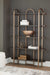 | Details | Shelves made of ash veneer and engineered wood, Metal frame, Frame with antiqued goldtone finish, 5 fixed shelves with dark brown finish, Assembly required | |