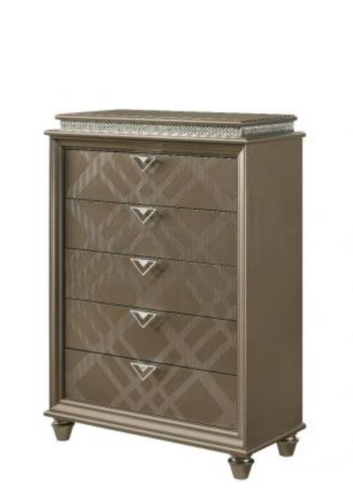 This Cristal bedroom collection has been carefully crafted for elegance. Combining style and durability, this piece has an elegant look that will enhance any bedroom space.