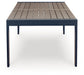 Easy-breezy beauty, made to withstand the elements. This outdoor dining table makes a serene statement with its soothing shade of blue and contrasting wood-look top. Crafted with durable materials for added longevity, it's a smartly stylish addition to your outdoor oasis.
