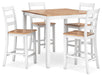 Complement your home’s simply relaxed sensibility with this counter height dining table and bar stools. A crisp white hue offers a chic contrast to the natural wood tone, for a neutral look that vibes with a variety of aesthetics. Whether you're sipping your morning coffee, settling in for dinner or working from home, this set is smartly designed for everyday comfort and style.