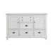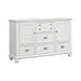 The Jamestown Wood Dresser in White offers a perfect combination of durability, style, and functionality, making it an essential addition to any bedroom. Expertly crafted from solid Acacia, premium manufactured woods, and authentic Oak veneers, this dresser is designed for long-lasting durability while preserving the natural elegance of real wood. The Jamestown collection reflects modern coastal charm, with clean, contemporary lines and a crisp, brushed white finish that brightens your space and brings a serene, beach-inspired ambiance to your room. The dresser provides ample storage, helping to keep your bedroom organized and clutter-free. Thoughtfully designed with clean lines and elegant panel detailing, this large dresser blends practicality with sophisticated style, enhancing the overall ambiance of your space. The drawers glide smoothly on robust full-extension glides, and the meticulous dovetail joinery inside ensures superior craftsmanship and enduring quality. Additionally, the drawers feature finished interiors to prevent snags, with the top drawers lined in soft velvet to offer extra protection for your most treasured items. This dresser is both a chic and functional piece that enhances any bedroom with its timeless design and practical storage solutions.