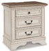 | Details | B743B6: Made of veneers, wood and engineered wood, with cast resin components, Includes upholstered headboard, footboard and rails, Distressed, chipped white finish, Upholstered headboard with foam cushion and button tufting, Foundation/box spring required, sold separately, Mattress available, sold separately, Assembly required, Bed is compatible with an adjustable base, B743B1: Made of veneers, wood and engineered wood, with cast resin components, Antiqued two-tone finish, 7 smooth-gliding drawers with dovetail construction, Dark bronze-tone hardware, Mirror attaches to back of dresser, Assembly required, Includes tipover restraint device, B743-93: Made of veneers, wood and engineered wood, with cast resin components, Antiqued two-tone finish, 3 smooth-gliding drawers with dovetail construction, Dark bronze-tone finished metal hardware, 2 electrical outlets and USB charging ports, Power cord included; UL Listed, Small Space Solution, | |