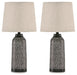 Details Set of 2, Made of metal with modified drum hardback fabric shade, Antiqued bronze-tone finish, 3-way switch, 1 E26 socket, type A bulb (not included); 100 watts max or LED equivalent; UL Listed, Assembly required