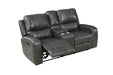 LINTON LEATHER CONSOLE LOVESEAT W/ DUAL RECLINERS-GRAY