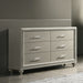 Meet the Lumina Dresser, a sturdy companion crafted from solid Rubberwood and durable manufactured wood, coated in an eco-friendly decorative laminate for enduring strength. Its sleek exterior boasts a high gloss gray finish, complemented by embossed silver laminate drawer fronts adorned with clear acrylic pulls, adding a touch of glam to any space. Inside, each drawer is meticulously constructed with English dovetail joinery, finished interiors, and full-extension glides for seamless functionality. With six spacious drawers, this dresser offers ample storage for all your clothing essentials. Experience the perfect blend of style and practicality with the Lumina Dresser, a reliable choice for your home.