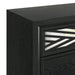 The Obsidian 5-Drawer Chest in Black is a sophisticated piece that combines modern elegance with practical functionality. Expertly crafted from premium solid Rubberwood and enhanced with manufactured woods and veneers, this chest offers both lasting beauty and the durability of genuine wood. Its sleek design is highlighted by clean lines and a low-sheen black finish that exudes refined sophistication. Geometric cut-outs backed with mirror-like Mylar add a luxurious touch of modern glamour. The chest features five smooth-gliding drawers equipped with durable Kenlin Glides and stylish acrylic drawer pulls, all meticulously crafted with dovetail joinery and finished interiors for a snag-free, elegant storage solution.