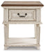 Elevating the art of traditional cottage styling, this nightstand is your dream bedroom retreat realized. Antiqued two-tone aesthetic blends a chipped white with a distressed wood finished top for added charm. Adorned with classic bail pull hardware, the smooth-gliding drawer is crafted with quality dovetail construction for years of satisfaction.