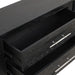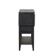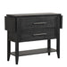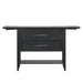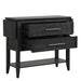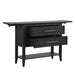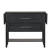 The Sable Crest Drop Leaf Server is a versatile and durable piece designed to enhance both the style and functionality of your dining space. Built from solid Rubberwood and premium engineered woods, and finished with real Oak wood veneers, it offers the lasting strength of real wood combined with enduring beauty. The sophisticated ebony sable finish, applied through a meticulous multi-step brush technique, highlights the natural grain and unique characteristics of the wood, adding depth to your dining area. The transitional design blends contemporary clean lines with subtle farmhouse charm, making it suitable for a variety of interior styles. This server is not only stylish but also highly functional, featuring two spacious storage drawers, an open shelf for easy access, and an extendable leaf that transforms it into a convenient buffet server. Its compact size and adaptable design make it perfect for use in entryways and hallways as well, offering a practical and attractive solution for any space that needs a touch of both style and utility.