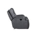 The Titan Glider Recliner in gray offers the perfect blend of durability and comfort. Built with hardwood plywood and engineered wood frames, this recliner is designed to support up to 350 lbs per seat, ensuring longevity. The soft, luxurious leather-look fabric, crafted from 100% easy-care polyester, is both breathable and comfortable. Pocket coil cushions provide tailored support by contouring to your body, evenly distributing weight, and reducing pressure points for superior back and body support. Featuring a contemporary style, the extra-wide track arms seamlessly transition into broad footrests, creating a modern silhouette accented by contrasting welts. Enjoy the ultimate luxury of smooth gliding action and comfortable chaise footrests, making it perfect for stylish lounging. This glider recliner combines style, comfort, and practicality, making it an ideal addition to any living space.