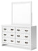 Details B427B2: Includes twin panel headboard, footboard, rails and slats, Made with hardwood solids, okoume veneer and MDF substrates, White finish, Foundation/box spring required, sold separately, Mattress available, sold separately, Assembly required, B427B1: Includes dresser and mirror, Made with hardwood solids, okoume veneer and MDF substrates, White finish, 6 drawers with dovetail construction and metal center guides, Hardware with dark finish, Drawer interiors are lined with a wood grain laminate for a clean, finished look, Mirror attaches to back of dresser, B427-46: Made with hardwood solids, okoume veneer and MDF substrates, White finish, 5 drawers with dovetail construction and metal center guides, Hardware with dark finish, Drawer interiors are lined with a wood grain laminate for a clean, finished look, B427-92: Made with hardwood solids, okoume veneer and MDF substrates, White finish, 2 drawers with dovetail construction and metal center guides, Hardware with dark finish, Drawer interiors are lined with a clean wood grain laminate for a clean, finished look,