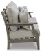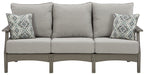 It’s the dawn of a new day for gray. Embrace the style trend with this outdoor sofa. Crafted of HDPE material that combines the exceptional durability and weather resistance you need with the “wood look” you love, this comfortably cushioned sofa takes outdoor living to a whole new level. Rest assured, the thick seat and back cushions and throw pillows are wrapped in our exclusive Nuvella® high-performance fabric that’s fade resistant, stain resistant and a breeze to clean.