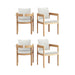 The Wesley Patio Side Chairs with White Cushions (Set of 4) combine durability, comfort, and modern elegance to elevate any outdoor dining space. Expertly crafted from FSC-Certified Acacia solid wood, these chairs offer exceptional strength and natural resistance to the elements, ensuring long-lasting beauty and performance. The expertly applied light, clear multistep finish enhances the natural wood grain’s rich texture and color while providing a protective layer for added durability in outdoor environments. Designed for comfort, each chair features high-density 6cm foam seat and back cushions wrapped in premium Sundura™ fabric—a solution-dyed 100% polyester that resists fading, mildew, and moisture, keeping the cushions vibrant and fresh season after season. The chairs'' minimalist and airy design features sleek, clean lines and gently rounded shapes, blending modern sophistication with organic charm. Each piece is truly unique, showcasing natural wood grain variations with distinct patterns and textures that deliver timeless beauty and authentic character—ensuring no two chairs are exactly alike.